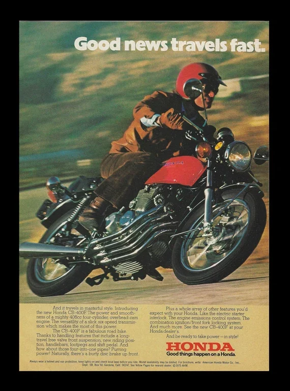 Riders appreciate the CB400F for its smooth and refined performance, offering a more comfortable and economical alternative to the high-revving two-strokes of the era. While it may not match the acceleration of its two-stroke competitors, its build quality and handling make it a beloved choice among classic motorcycle enthusiasts. (BikeBound)